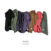 BJHG欧美纯色四季百搭宽松贴布做旧磨毛水洗衬衫潮男美式休闲衬衣