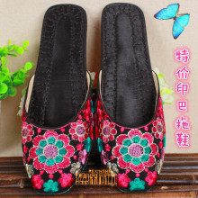 印度巴基斯坦尼泊尔手工牛皮刺绣花平底百搭女单鞋民族风凉鞋拖鞋