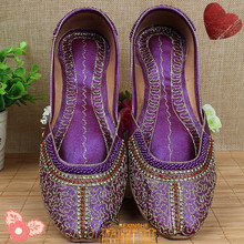 2016新款印巴民族风手锈低帮鞋印度巴基斯坦手工刺绣牛皮钻石女鞋