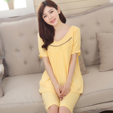 2017夏天女莫代尔短袖胖MM睡衣韩版加肥加大妈妈休闲家居服套装夏