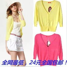 夏季新款薄款七分袖v领沙滩防晒针织开衫女装空调衫小披肩 外贸