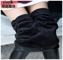 秋冬加绒加厚外穿仿皮打底裤长裤显瘦黑色小脚裤皮裤弹力大码女裤