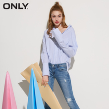 聚ONLY2017夏新纯棉V领落肩袖前短后长宽松衬衫女|117205527