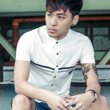 夏季男士短袖t恤韩版修身有翻领条纹衣服 港风微领polo衫潮牌男装