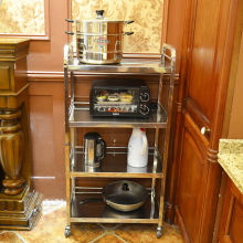 不锈钢厨房置物架微波炉架子落地四层锅架厨具用品收纳储物架餐车