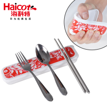 户外便携式餐具套装不锈钢筷子勺叉子三件套韩式学生旅行餐具盒