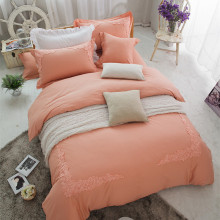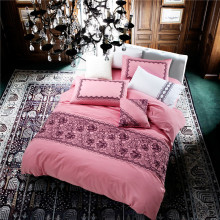 纯色全棉刺绣结婚四件套婚庆粉色欧式简约素色1.8m双人床刺绣60支