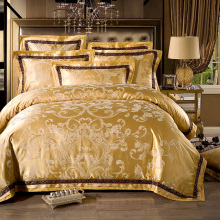 贡缎提花婚庆四件套床单式双人被套欧式被套床笠1.8m床纯棉保护套