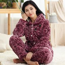 睡衣女冬季法兰绒夹棉中老年妈妈加肥加大码珊瑚绒棉祆冬天家居服