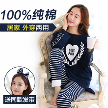 韩国代购春秋款睡衣女纯棉长袖圆领碎花宽松全棉家居服套装可外穿