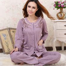 包邮春秋季女士纯棉睡衣加大码睡衣胖MM妈妈长袖春秋款居家服套装
