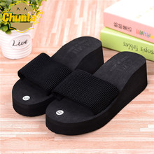 韩版人字拖女士坡跟休闲凉拖鞋女夏季黑色夹脚防滑高跟厚底沙滩鞋