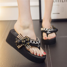 包邮女士夏季凉拖鞋子韩版大码坡跟松糕厚底防滑沙滩夹脚人字拖潮
