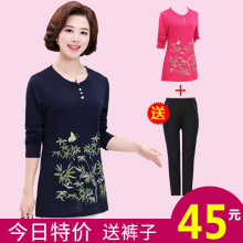 妈妈装春装打底衫长袖衬衣4050岁中年妈妈套装时尚中老年女装t恤