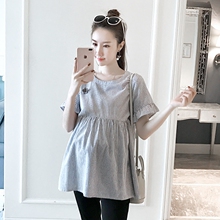 孕妇衬衫女夏季宽松条纹钉花短袖孕妇衬衣打底衫孕妇装夏装上衣服