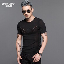 男士针织款圆领潮短袖T恤衫 夏季薄款冰丝线衣 时尚透缕空打底衫