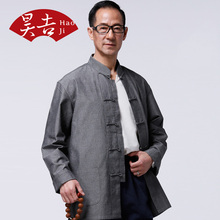 昊吉中老年唐装男春秋休闲长袖盘扣老人衣服爷爷装汉服民族服装