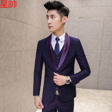 春新郎结婚礼服西装三件套男士韩版修身伴郎主持人西服套装影楼潮