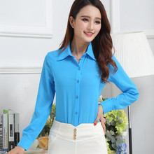 春夏新款雪纺衬衫女长袖韩范女装上衣OL宽松休闲衬衫