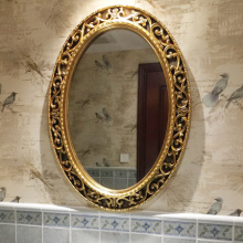 欧式镂空卫浴镜子大椭圆形浴室镜子装饰化妆镜卫生间壁挂镜框厕所