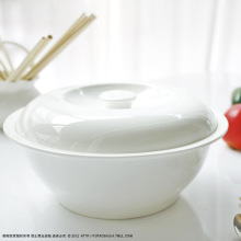 御陶世家 唐山骨瓷 纯正无铅纯白骨瓷陶瓷带盖汤盆 汤碗品锅大号