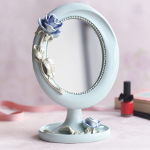 化妆镜创意欧式田园梳妆玫瑰树脂台式镜子公主镜折叠高清美容镜