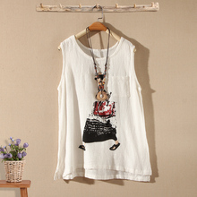 2016春夏装新款民族风女装印花棉麻背心女夏宽松小吊带亚麻t恤衫