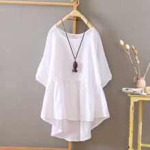 2017春夏装新款韩版学生裙摆式上衣中袖女装棉麻T恤女五分袖宽松