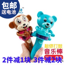 新款婴幼儿手拿音乐棒故事棒电动声光小熊打鼓音乐棒安抚玩具床铃