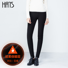 韩氏伊人2016冬装弹力女士加绒加厚打底裤女裤外穿黑色显瘦长裤子