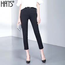 韩氏伊人女裤2017夏季通勤黑色大码休闲裤高腰长裤小脚铅笔裤西裤