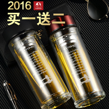 宜加美 双层玻璃杯加厚户外运动旅行杯泡茶杯过滤便携透明水杯子