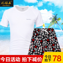 夏季短袖速干T恤男透气风砺石沙滩裤两件套女户外运动短裤套装