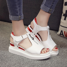 甜美2017夏新款坡跟鱼嘴罗马鞋女凉鞋磨砂松糕厚底女学生高跟女鞋