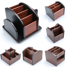 包邮木质多功能组合笔筒座创意带抽屉旋转办公收纳盒桌面笔筒文具