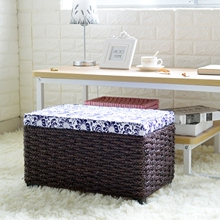 包邮草编玩具收纳凳储物凳子宜家布艺长方形大号藤编收纳箱换鞋凳
