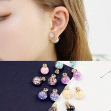 日韩国版饰品许愿沙球前后式水晶百搭气质女耳饰耳圈耳钉耳环