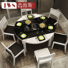 恋维斯折叠餐桌椅组合现代简约伸缩圆餐台烤漆钢化玻璃小户型饭桌