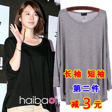 2017夏装新款女装大码上衣宽松莫代尔打底衫短袖t恤蝙蝠长袖圆领