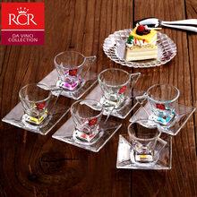 进口意大利RCR时尚水晶玻璃带碟情侣对杯礼盒品茗杯小茶杯咖啡杯