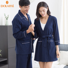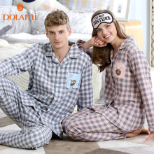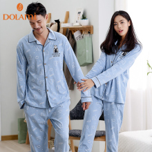多拉美春秋季长袖情侣睡衣纯棉全棉衬衫领女情侣家居服男开衫套装