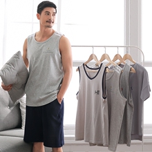 多拉美夏季背心睡衣男夏纯棉运动薄款短袖夏天男士无袖家居服套装