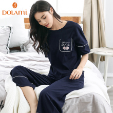 多拉美睡衣女夏短袖七分裤套头纯棉可外穿简约家居服女士韩版套装