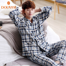 多拉美秋季纯棉睡衣男款长袖大码可外穿男士秋冬季加厚家居服套装