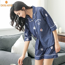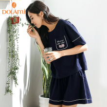 多拉美睡衣女夏短袖短裤女人简约女士纯棉少女家居服夏季宽松套装
