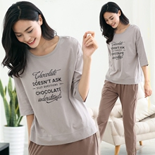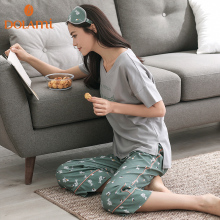 多拉美夏季女士睡衣短袖长裤纯棉可外穿加大码全棉女人家居服套装
