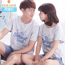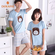 多拉美情侣睡衣夏纯棉短袖套装男士女士夏季薄款休闲情侣装家居服