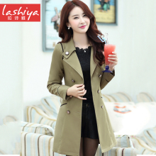 拉诗雅2017春秋装新款女装中长款外套女韩版修身双排扣风衣外套女