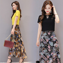 套装女2017夏季新款韩版时尚短袖上衣名媛气质休闲两件套连衣裙女