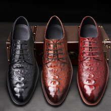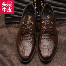2017鳄鱼纹皮鞋男真皮男英伦尖头低帮男鞋系带正装平底休闲牛皮